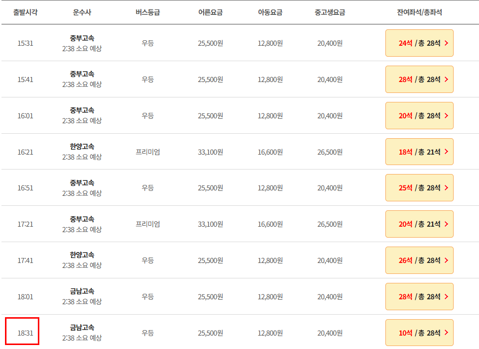 - 주말, 명절, 휴가철 등 혼잡 시기에는 좌석이 빨리 매진되므로