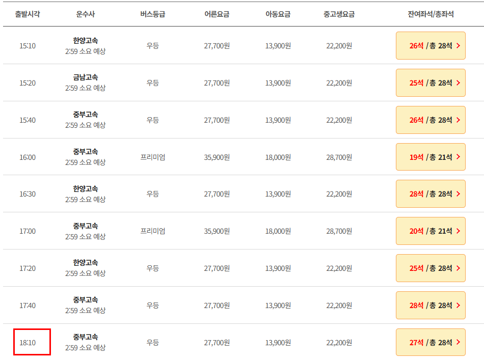 - 주말, 명절, 휴가철 등 혼잡 시기에는 좌석이 빨리 매진되므로